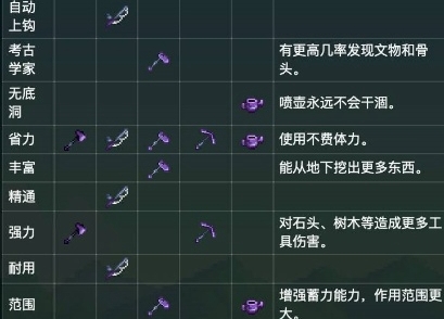 5、慷慨:使用锄头挖出物品后有50%概率翻倍。