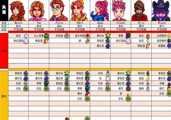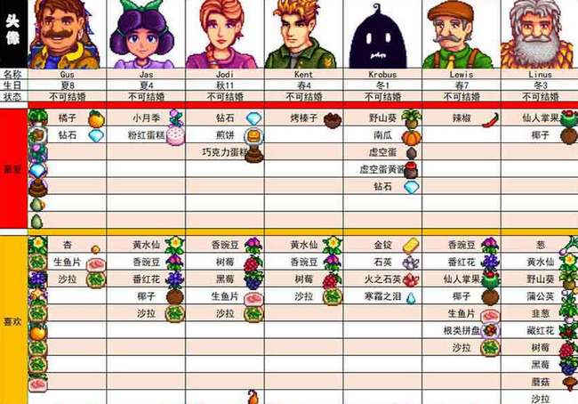 以上就是小编整理带来的《星露谷物语》人物喜好一览,更多相关游戏攻略,请关注手游网!