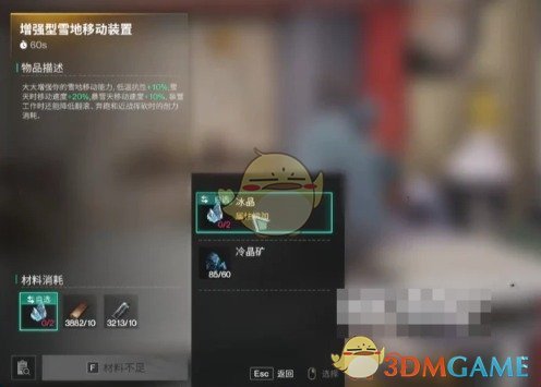 传送过去后在传送点的东北区域附近步行一两百米左右就可以发现冰晶矿,地形陡峭,这类矿石一般是三到四个围绕一起,玩家们使用特殊的采矿道具将其采集完毕。