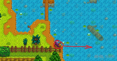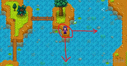 那么星露谷春季鱼王位置在哪里呢,官方设定是整个矿湖区域都可以。接下来就是春季鱼王的地点,鱼王都有特殊的垂钓地点,下面一一说明(红色圆圈表示站位,红色箭头表示甩杆方向)