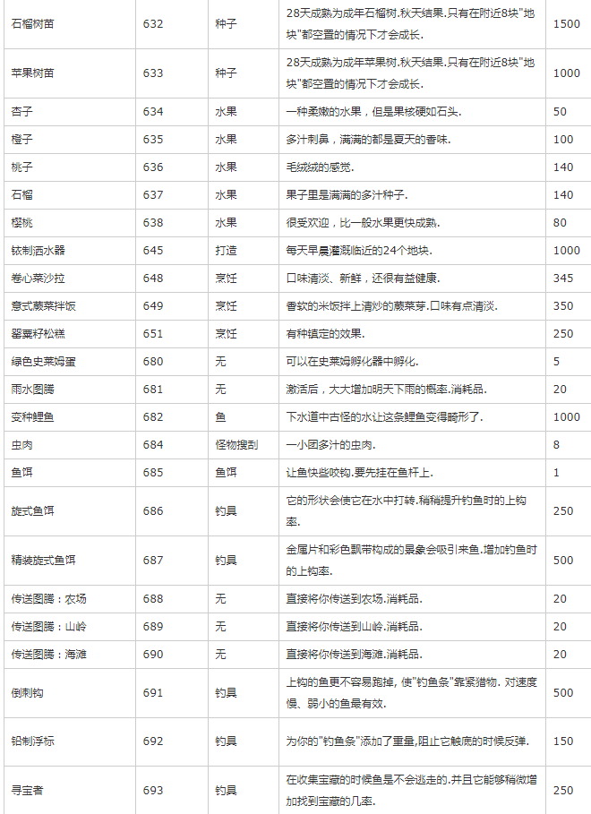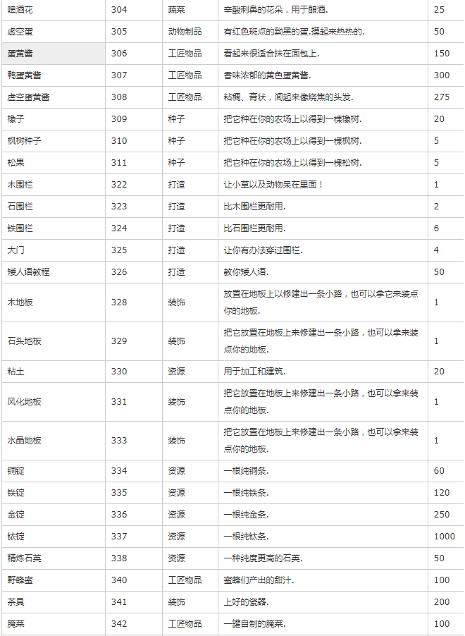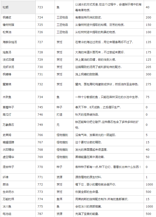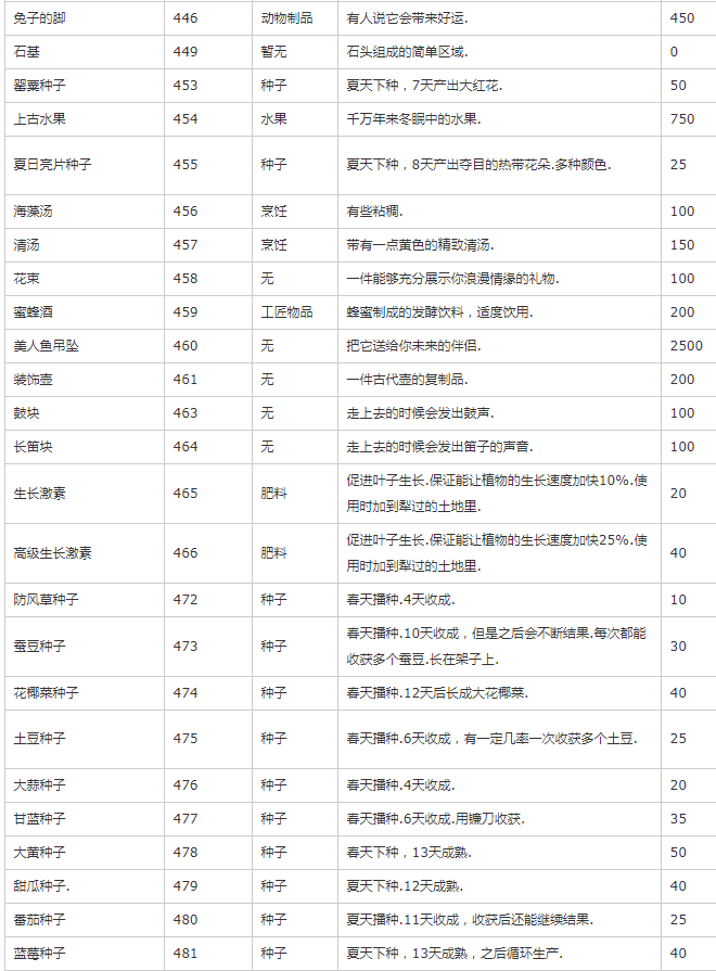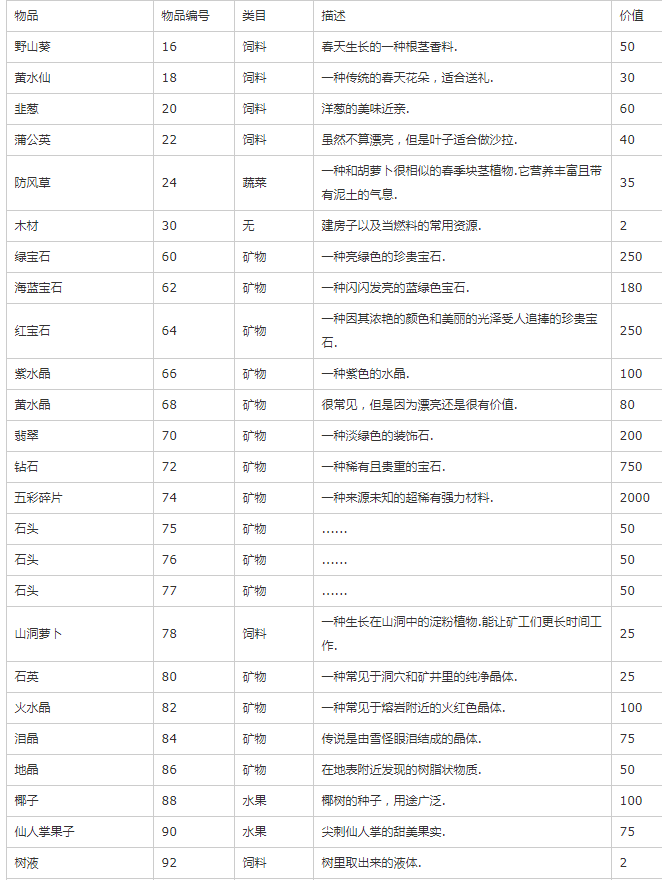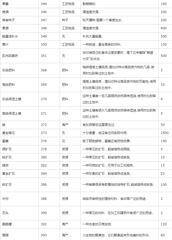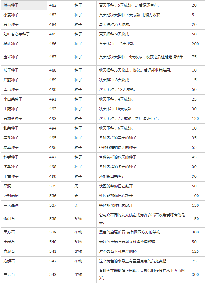 主要是除矿物、种子、装备外的其他物品