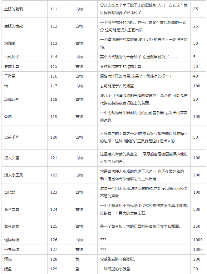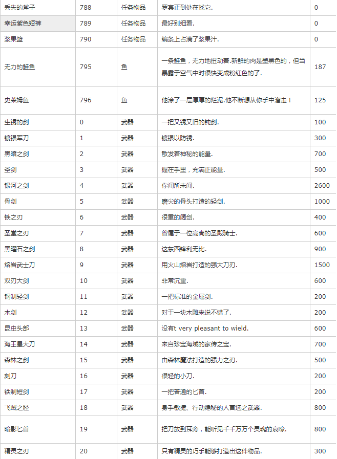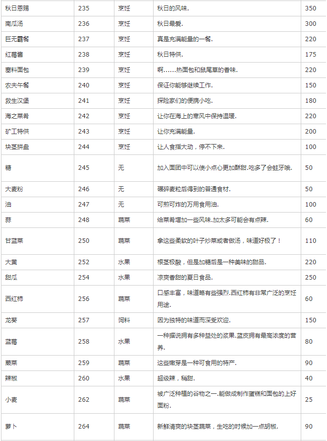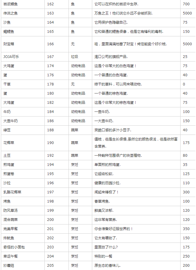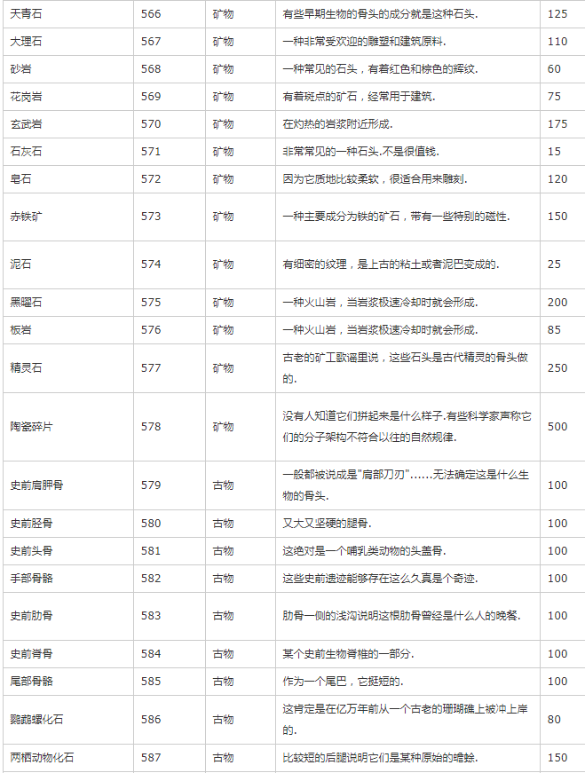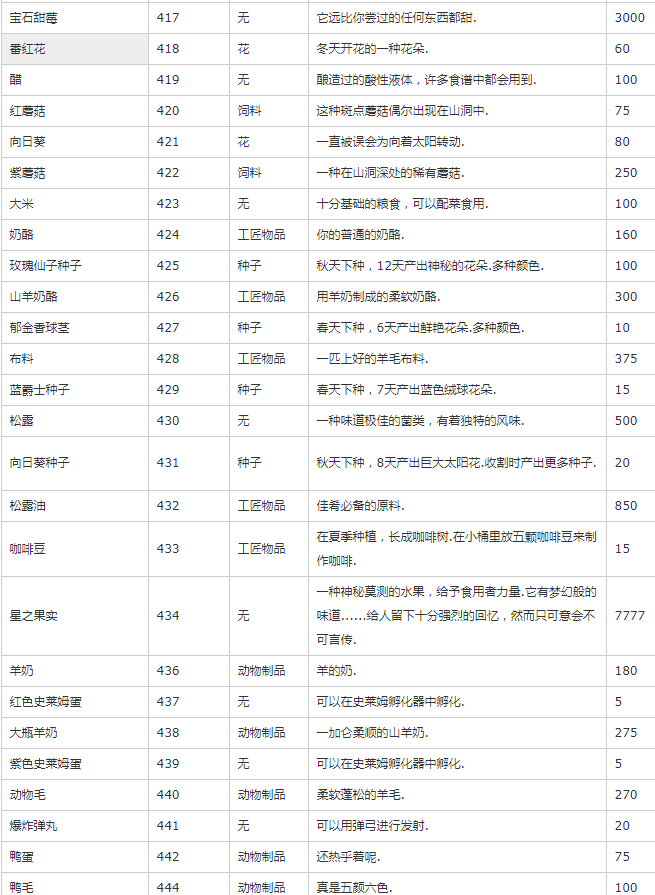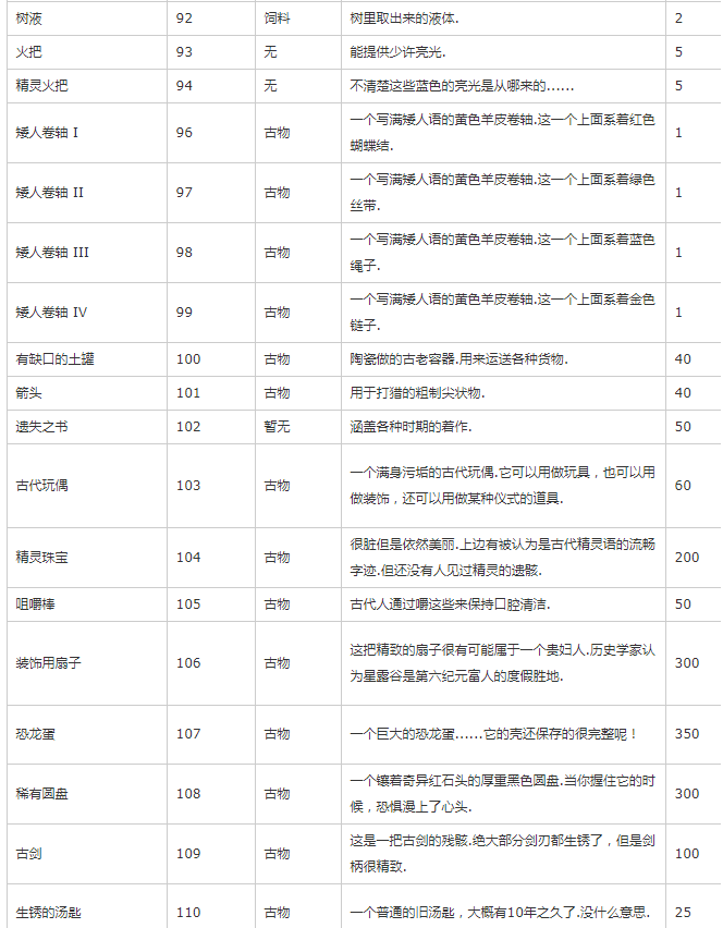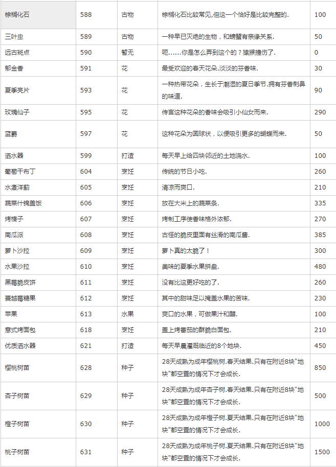 主要是除矿物、种子、装备外的其他物品