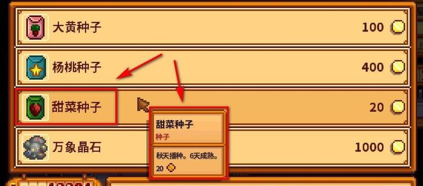 3、 在沙漠商店买甜菜种子;