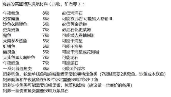 (下列鱼类的初始鱼塘容量只是一条鱼:水滴鱼、鬼鱼、冰柱鱼、岩浆鳗鱼、史莱姆鱼、石鱼、鲟鱼、无力的鲑鱼、木跃鱼。)