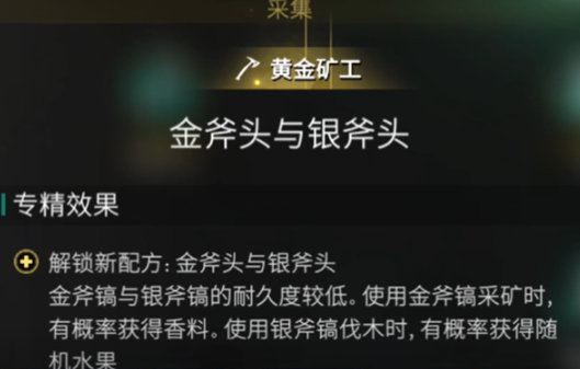 2、使用金斧镐采矿时概率获得香料,使用银斧镐伐木时概率获得水果。