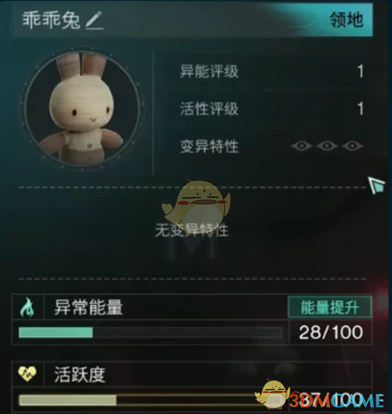自动采集:在异常能量超过30点的时候激活,乖乖兔会自动开始采集工具。
