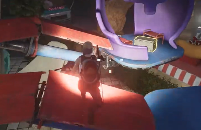 收获了武器箱的奖励后,我们继续前进,这一次目标是位于小地图八点方向的城堡。靠近城堡入口时,你会看到一个绝佳的观景点,别忘了拍下美美的照片。拍照之后,进入城堡,进门左转,顺着楼梯往上走。当你站在屋顶时,右转继续上楼,再往前走,就会找到一个神秘的宝箱,打开之后,继续跟着路线前进,向着过山车进发。不过,小伙伴们注意了——在过山车快要左转时,你需要跳车。右手边的空中武器箱就等你去收获。