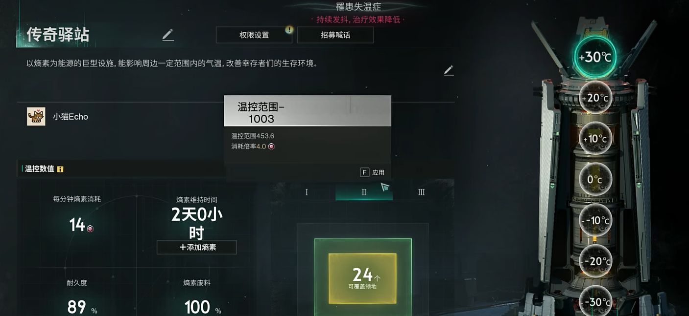 新剧本中,熵素成为了一个重要的资源。它不仅是新材料,也充当着雪国的货币。熵素在很多地方都能找到,尤其是在温控塔附近。熵素的用途很多,最重要的莫过于投放在温控塔中,它能帮助你获得所需的酸液,进而帮助你制造更多的高级物资。
