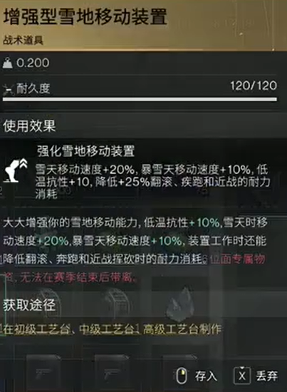 4、此时雪地移动装置的buff就会永久存在,并且不会消耗耐久度了。