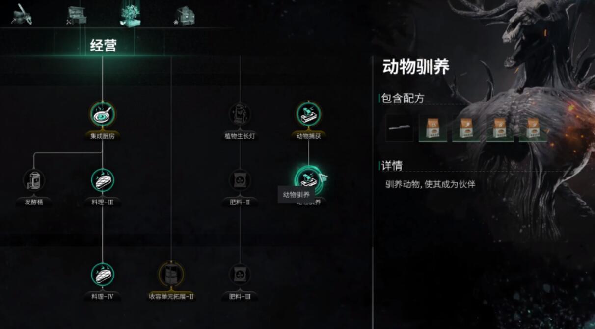游戏内动物词条分为资源型(如精肉、羊毛)、战斗型(暴击率提升、防御强化)、功能型(驯服消耗降低)三大类。C级动物:仅有1个词条,遗传概率100%,适合作为初始种源定向培养。B/S级动物:多词条但遗传随机性强,需消耗更多资源筛选。 核心策略:优先捕捉携带目标词条的C级动物(如精肉1),通过稳定遗传快速建立基础种群。