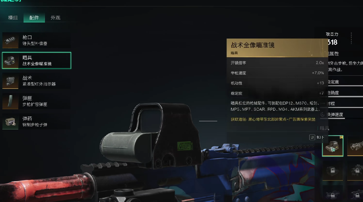 值得一提的是,玩家首次获取战术全效瞄准镜之后,建议是不要直接进行装配,而是返回到自己的基地当中,通过蓝图复刻的功能,来进行配件的蓝图复制,来保证下一次使用枪械时,可以随时进行安装。