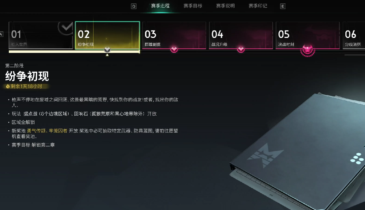 如果玩家想要获取战术全像瞄准镜,必须保证自己的赛季进度已经达到第二个阶段,保证地图中,已经开启了黑心地带的区块,此时,玩家直接传送前往到黑心地带当中,前往到坐标(6805,1856)区域,在坐标周围十米的位置内, 进行寻找。