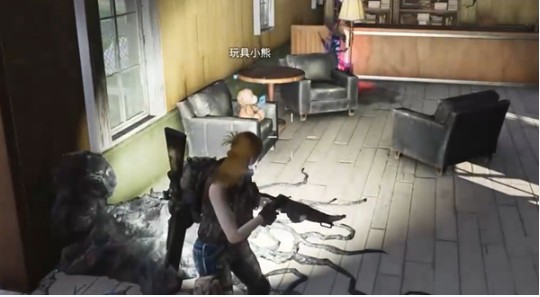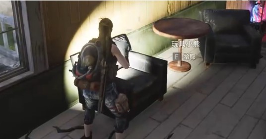 4、进入房子,左转可以看到沙发上有个小熊。