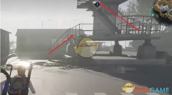 3、从楼梯上去,和带芯片锁的宝箱互动即可接取任务。