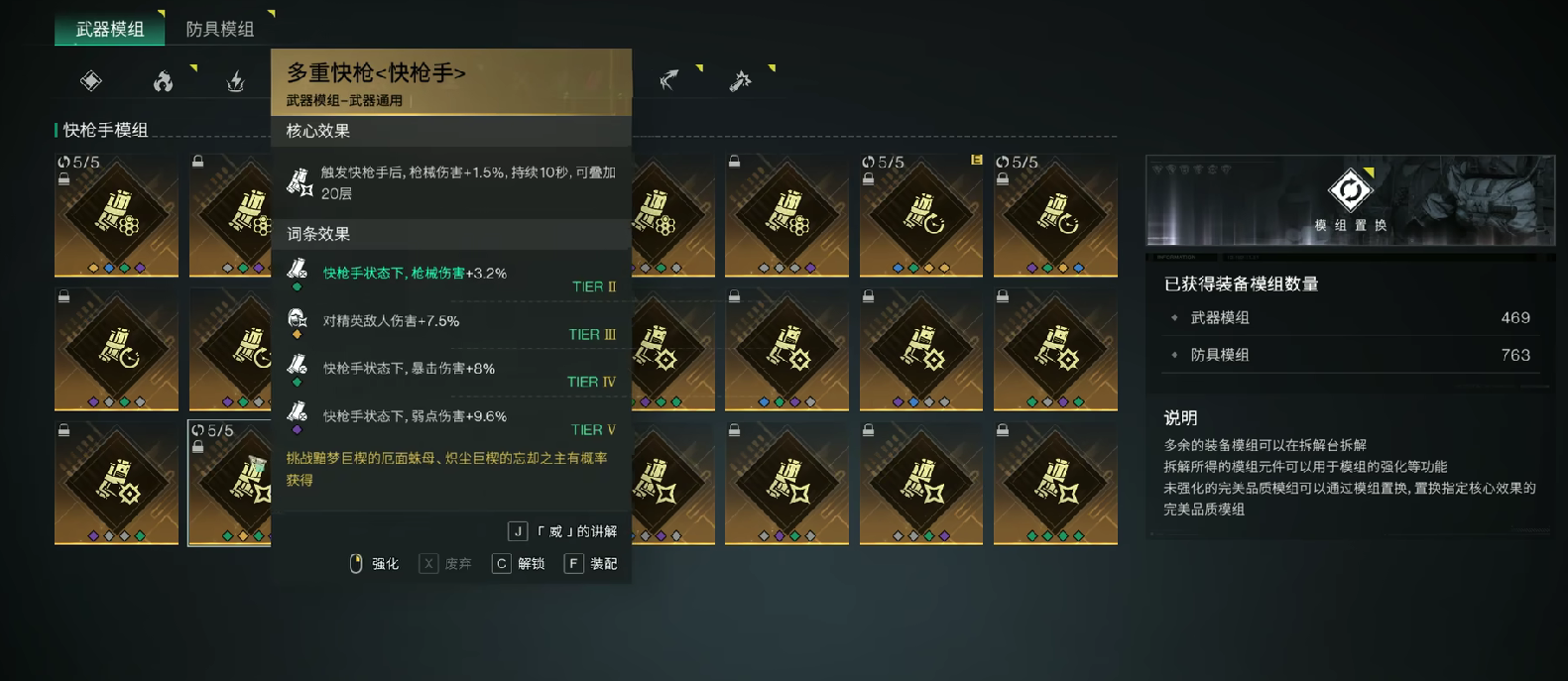 在搭配时选择持续快枪的模组,这样就能够让快枪手的覆盖率直接提升到100%,还能够叠加弹匣扩容,这样就能够有效的弥补临别礼的短板。在副武器方面建议搭配沙鹰蓝焰,通过蓝焰的猎人标记来有效地触发临别礼的增伤,最终实现循环输出。