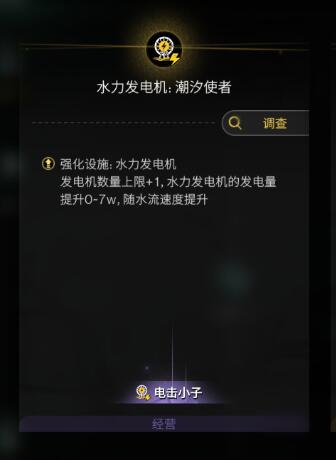 潮汐使者的核心优势在于其强化水力发电机上限+1及发电量随水流速度提升至1-7w”的效果。对于依赖稳定电力的玩家而言,这一专精直接打破了传统发电机的数量限制,尤其在水域丰富的区域,单台设备的发电效率可提升至常规设备的2倍以上。尤其是电力设施上限加1这个设定对我们后期的帮助非常大,所以小编推荐你如果考虑近水建家而且发电机数量8+的话,选择潮汐使者是非常划算的。