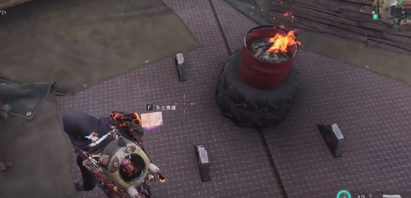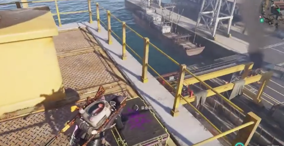 玩家进入到波光镇,直接骑着摩托车进门,进门之后左转,可以来到大仓库门口。靠左手边就有一个向上的楼梯,很快就能进入到船的平台。在油桶的边上就可以看到南瓜泥沙拉。在这个过程中还会遇到秃鹫,将其打败就可以获得1号武器箱。