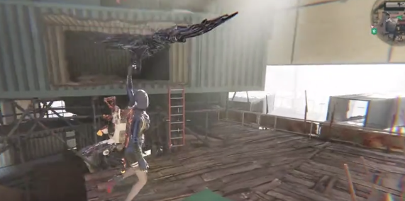 玩家可以从楼顶的缺口下来,直接绕到仓库的对面,在货架下面还可以找到第4个装备箱。接着朝南的光柱走过去,如果没有提示权限互动,则意味主线还没有推进。在描完锚点之后可以进入到白色大仓,走上2楼之后拿到最后一个武器箱。