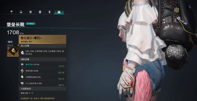 套装方面就可以选择暴击狂热,这就是一个很不错的选择。一旦再触发暴击,那就可以带来一个额外的伤害加成能迅速的提升输出能力。让每一次的攻击都会变得比较有威胁性,从鞋子这一方面来看,可以选择稳扎稳打,能有效保证攻击的稳定性,尽可能减少失误。