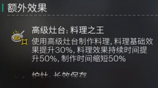 此外,惊喜春卷的制作效果也十分亮眼。当使用高级灶台制作时,料理的基础效果会提升30%,而且效果的持续时间也延长了50%,制作时间则减少了50%。这意味着,在高效利用高级灶台的情况下,玩家能够更快速地享受到料理带来的增益效果,在多人合作的情况下,可以更快为队友提供支持。