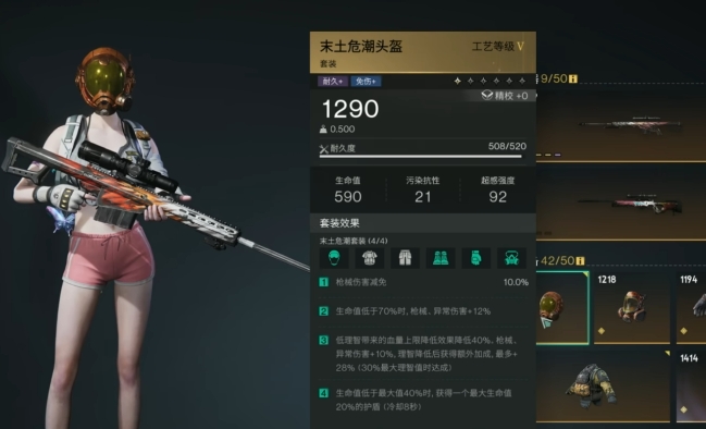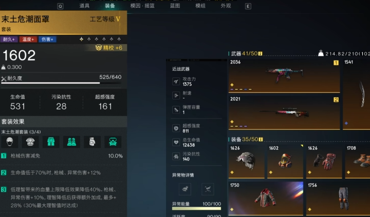 末土套的效果非常实用,在使用栗鸢狙击枪时,通常采用4件末土+孤狼+利刃长裤的组合,其中4件末土套是核心基础,能提升基础属性并提供特殊效果,孤狼套建议选择月北低语孤狼,可以增加最大弹容量和基础暴击率,还能提供弹射伤害的特殊效果,利刃长裤还可以强化远程伤害,模组搭配方面,主武器模组首选高频弹射,也可选择爆裂,副武器模组推荐印记增幅与栗鸢弹射形成暴击链,防具模组上,头盔选火力追击,面罩选精准弹射,上衣选坚盾庇护,手套选暴击强化,鞋子可选择尖峰时刻或掩护备战,可以大幅度的提升战斗中的效果。