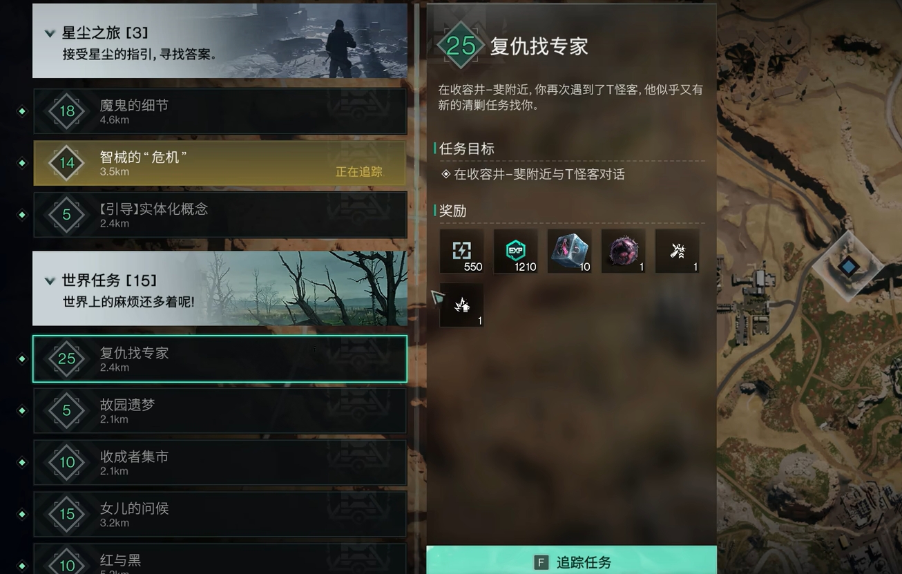 要想快速刷经验,自然先要从给经验最多的一环入手。目前七日世界里完成任务是获取大量经验的最佳途径,效率也非常的高,所以想冲级的玩家还请优先将所有能做的任务全部都清掉,包括主线和地图上的各类支线,直至自己被卡主或是将所有任务都清完为止。