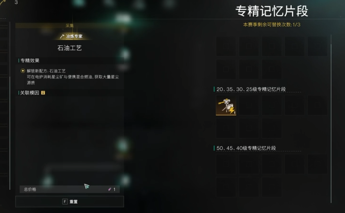 首先是必选专精,硫磺化工首当其冲,它能助力玩家生产酸液,在游戏里酸液堪称硬通货,几乎可用于交换所有重要道具,是解锁新技术与搭建高级设施的核心要素,一旦拥有能极大缓解后期资源压力,石油工艺同样不可或缺,借助电炉消耗星尘矿与便携混合燃油,玩家可获取大量星辰源质,源质在游戏中后期用途广泛,是重要货币与资源,点出该专精,基本能实现源质自由,还有星尘采矿平台,能提升20%的矿产量,搭配石油工艺,进一步夯实源质获取根基,对玩家发展意义重大。
