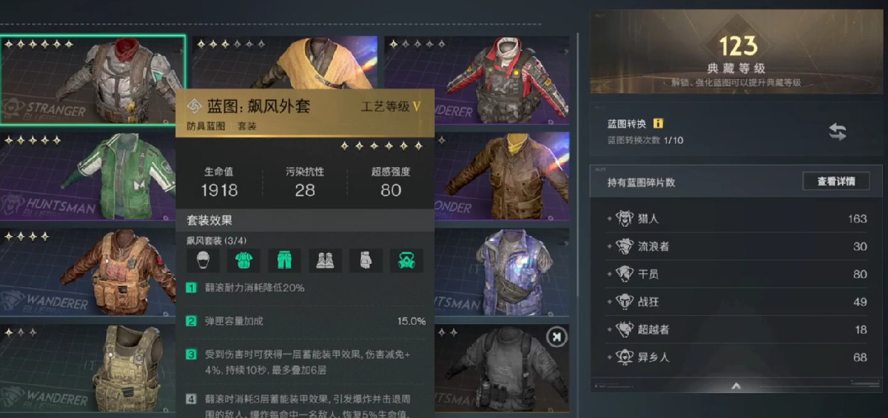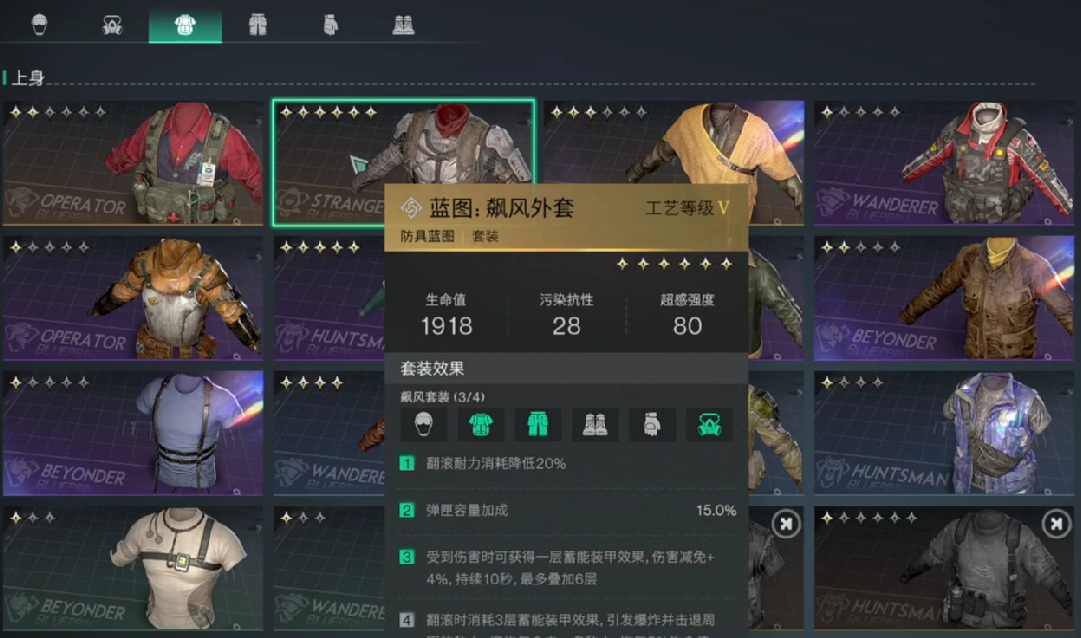 飙风套装在该游戏中一共有4件,玩家每穿戴一件就能够激活独特的效果。在游戏中,玩家获得了第1件标封装备的时候,它的翻滚消耗耐力将会降低20%。所以说玩家拥有了此装备之后会更加的灵活,也能够轻松的去躲避敌人的攻击,可以快速的调整位置。