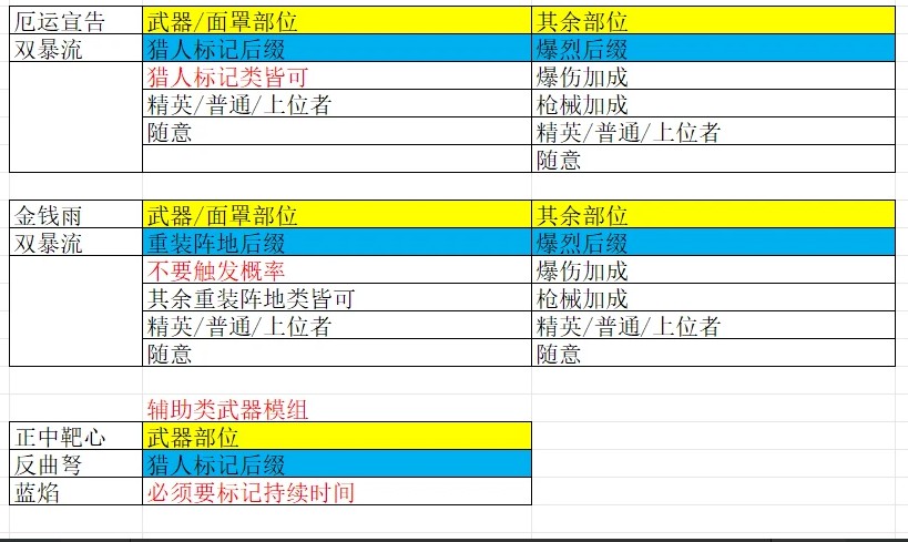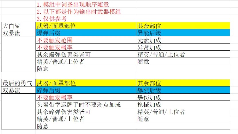 上述模组间互斥,例如异能后缀中不会出现爆伤或弱点加成