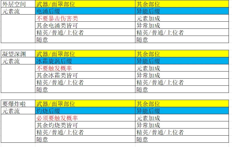 异能后缀:必有一条是元素加成,概率还有异常加成