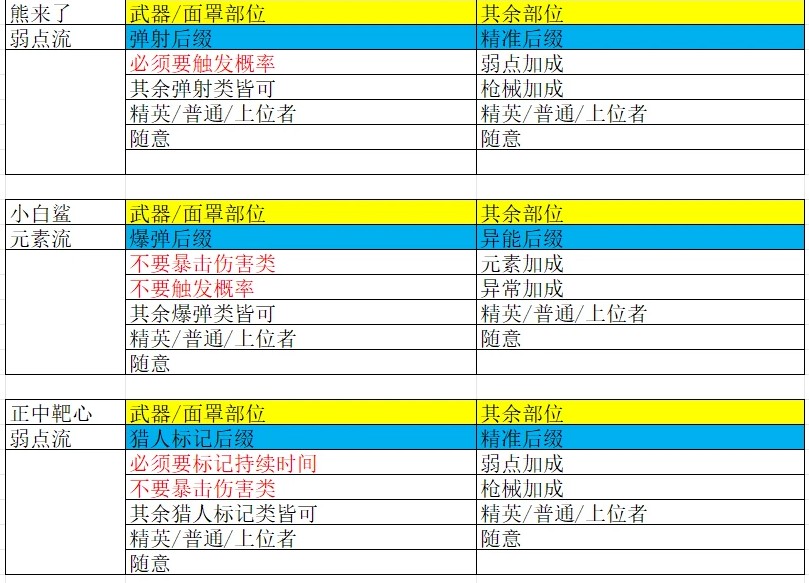 精准后缀:必有一条是弱点加成,概率还有枪械加成