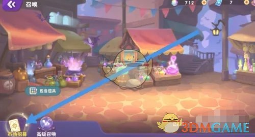 2、在召唤玩法内,点击左侧的市场招募功能前往;