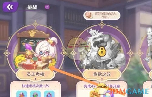 2、来到挑战页面后,继续点击左侧的员工考核玩法前往;