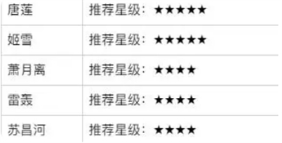 五星即为最佳推荐侠客,开局咱们一定要尽量选他,奠定前期阵容的基础优势!