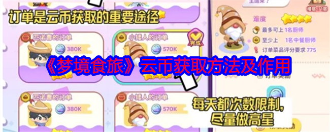 以上就是小编整理带来的《梦境食旅》云币获取方法及作用,更多精彩内容,请点击关注手游网!