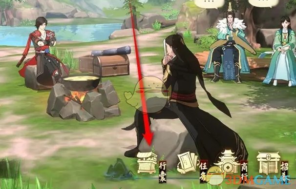 1、首先我们点击游戏主页下方的行囊前往;