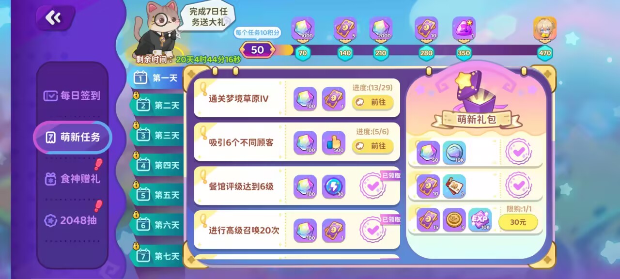 食神赠礼:大量钻石和召唤凭证获取,只需每天完成任务即可,2048抽获取资源