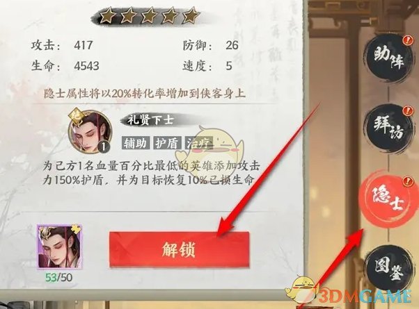 2、然后在隐士谱内,点击可以解锁的隐士,继续点击下方的解锁