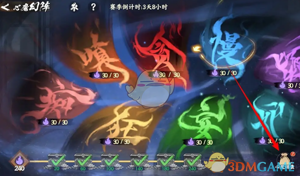 2、前往心魔幻阵页面后,点击右下角的心魔锦囊按钮;
