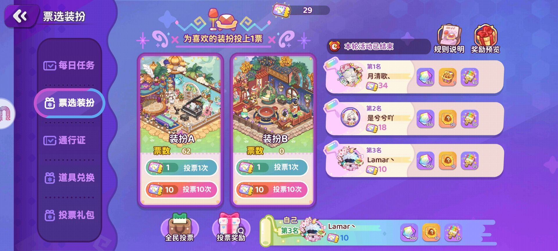 一个为装扮投票活动只比总投票数