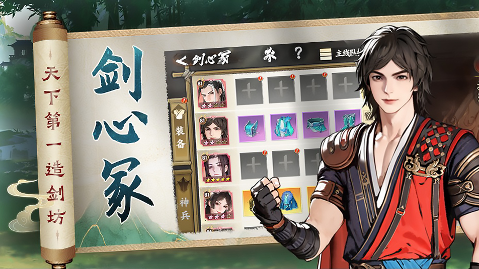 需要提升战力的少侠,可以在剑心冢里铸造侠客所需的装备,也可以通过装备进阶让装备获得更强大的战力。