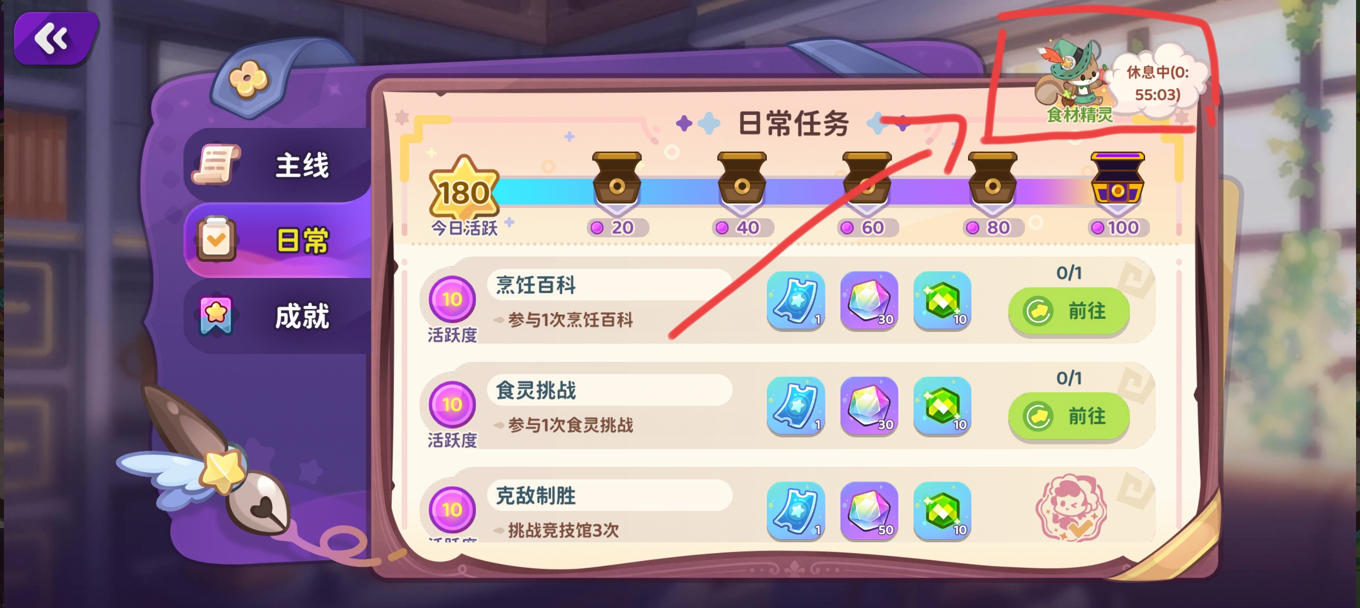 7.日常任务这里可以看食材精灵的出现时间段,记得买,前期很缺纯净食材