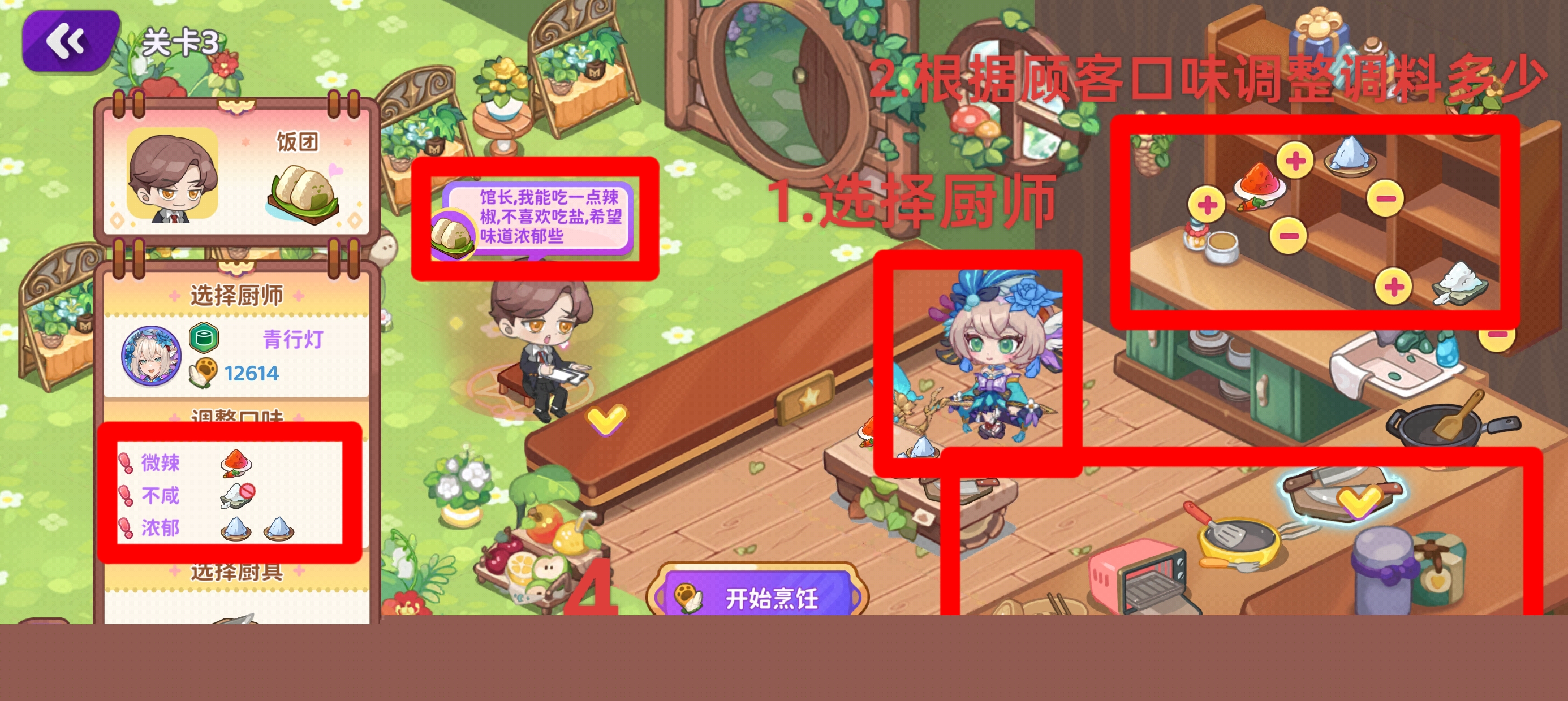 16.前期(25-之后)菜谱升级所需食材量较大,可以在打工商店2500币买5个超大食材包种植