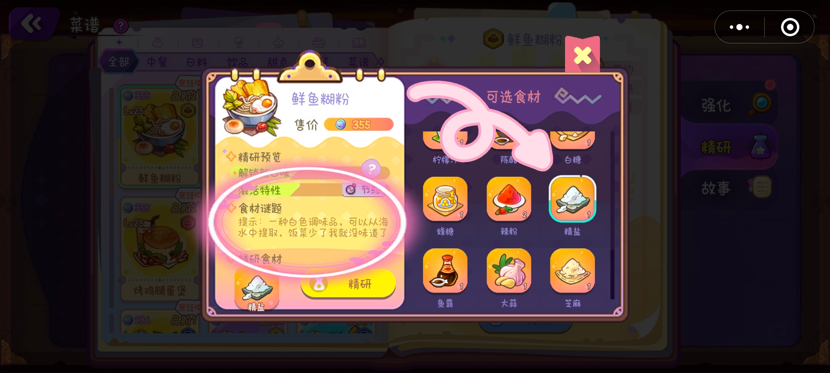 【注意】一定要选对调料,如果错误就会消失,不会返还哦,所以一定要看好在选择!!!