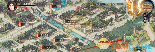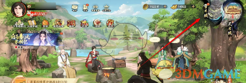 3、首先我们在游戏主页,点击右上角的雪月城进入;