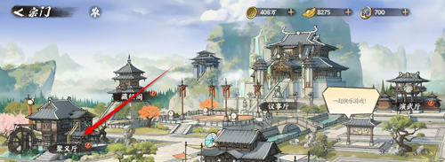 1、首先我们在游戏主页,点击右下角的宗门前往详情页;