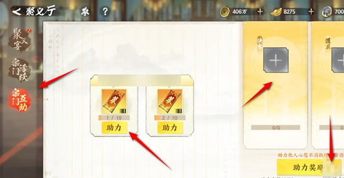 答:宗门-聚义厅-宗门助力-助力