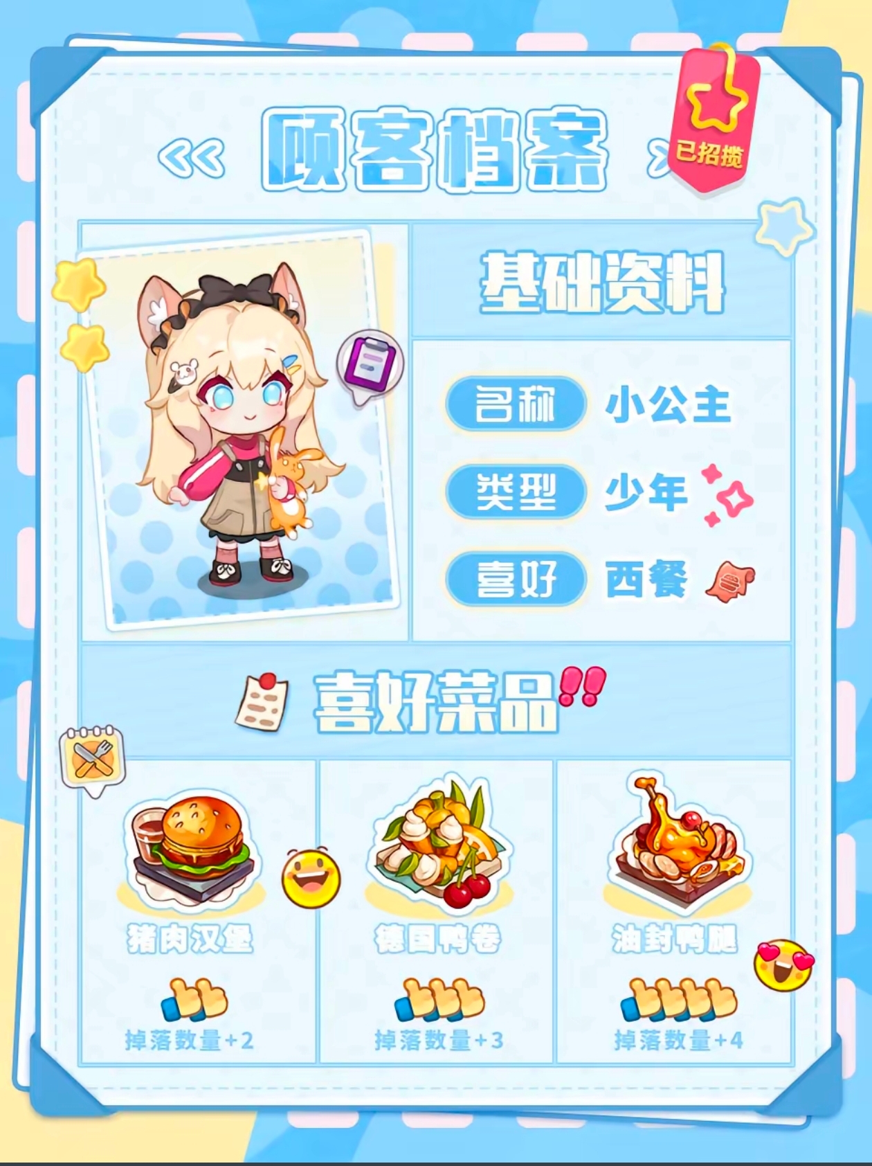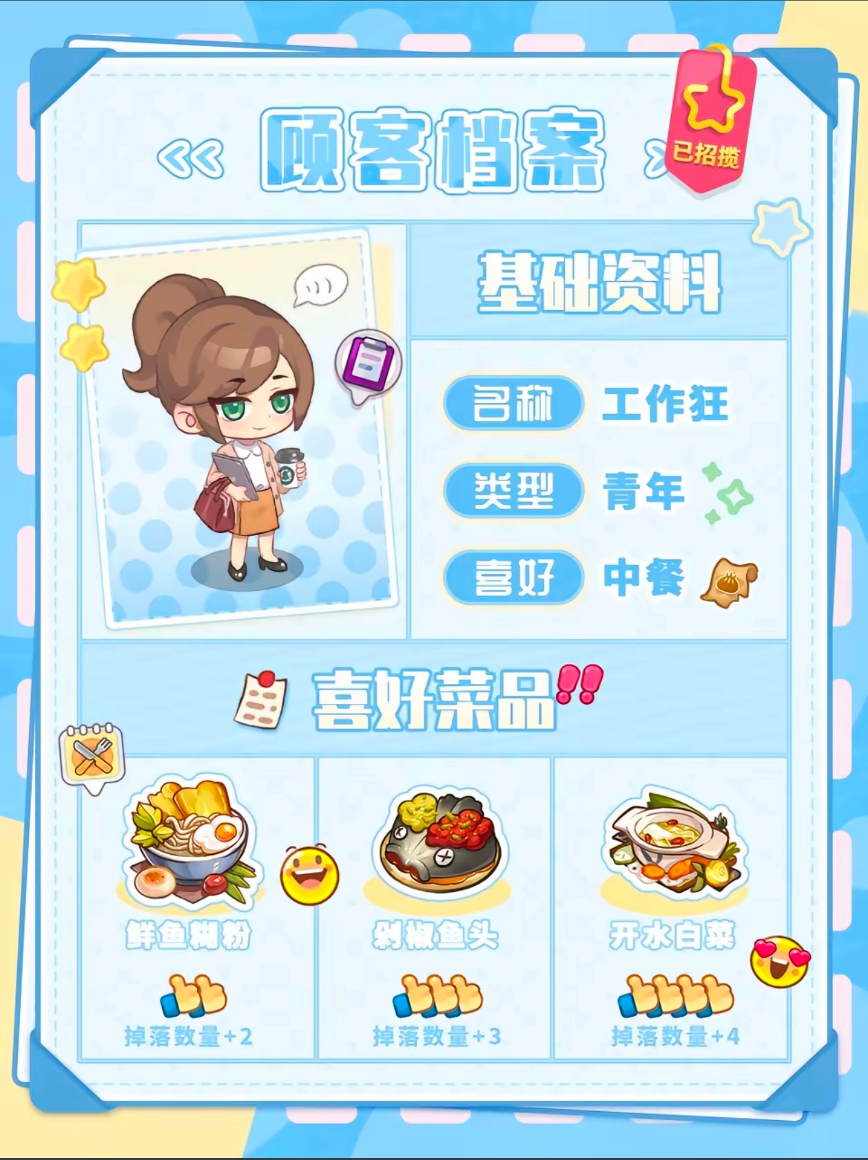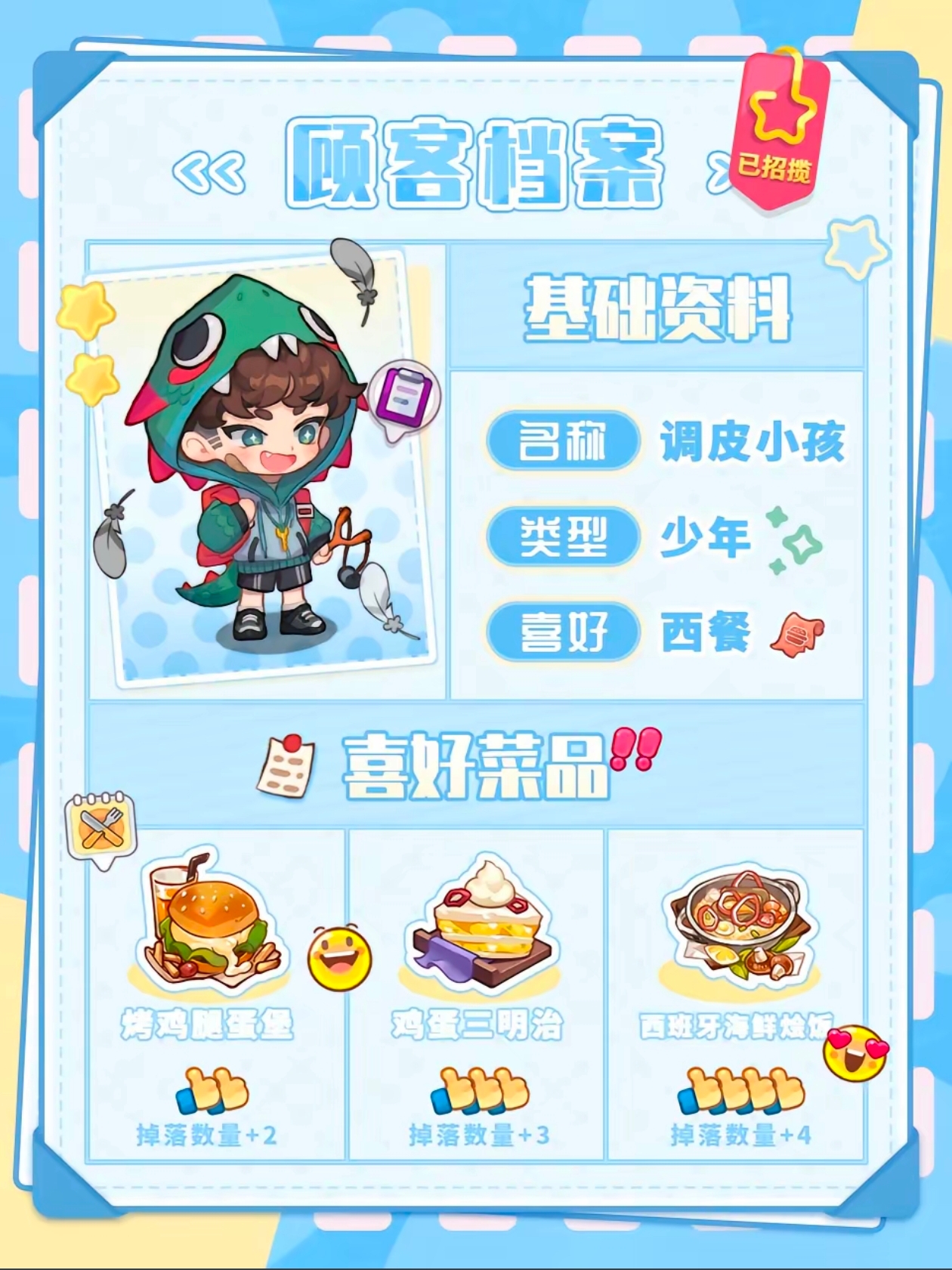 梦境食旅游戏中大家肯定觉得顾客没啥卵用,其实不然,升级顾客有很多益处,不但可以领取很多奖励,而且菜的价格还会随着顾客等级提升,还会提升收益评分!下面是小编给大家带来的《梦境食旅》顾客档案大全及烹饪百科攻略图分享。