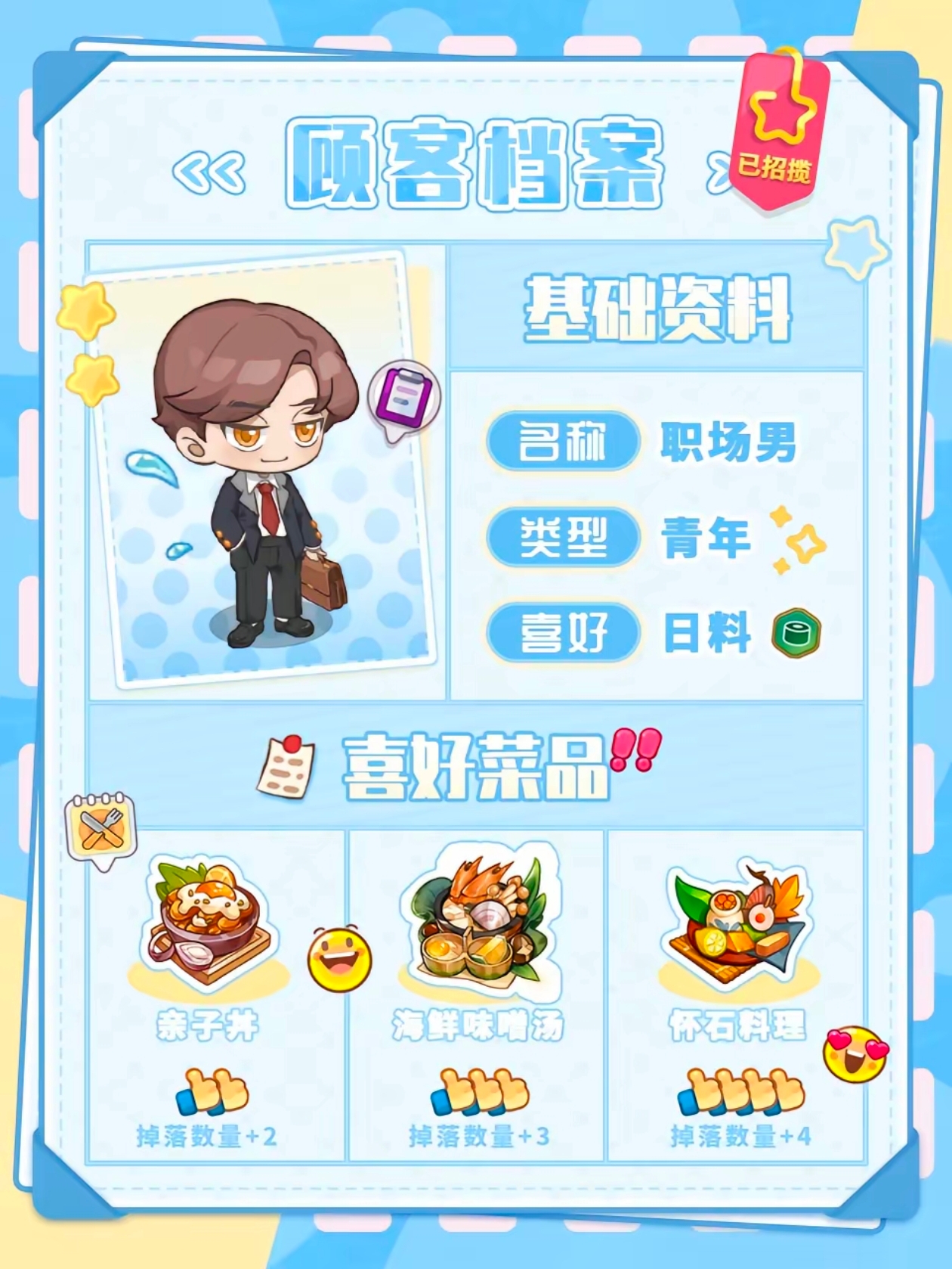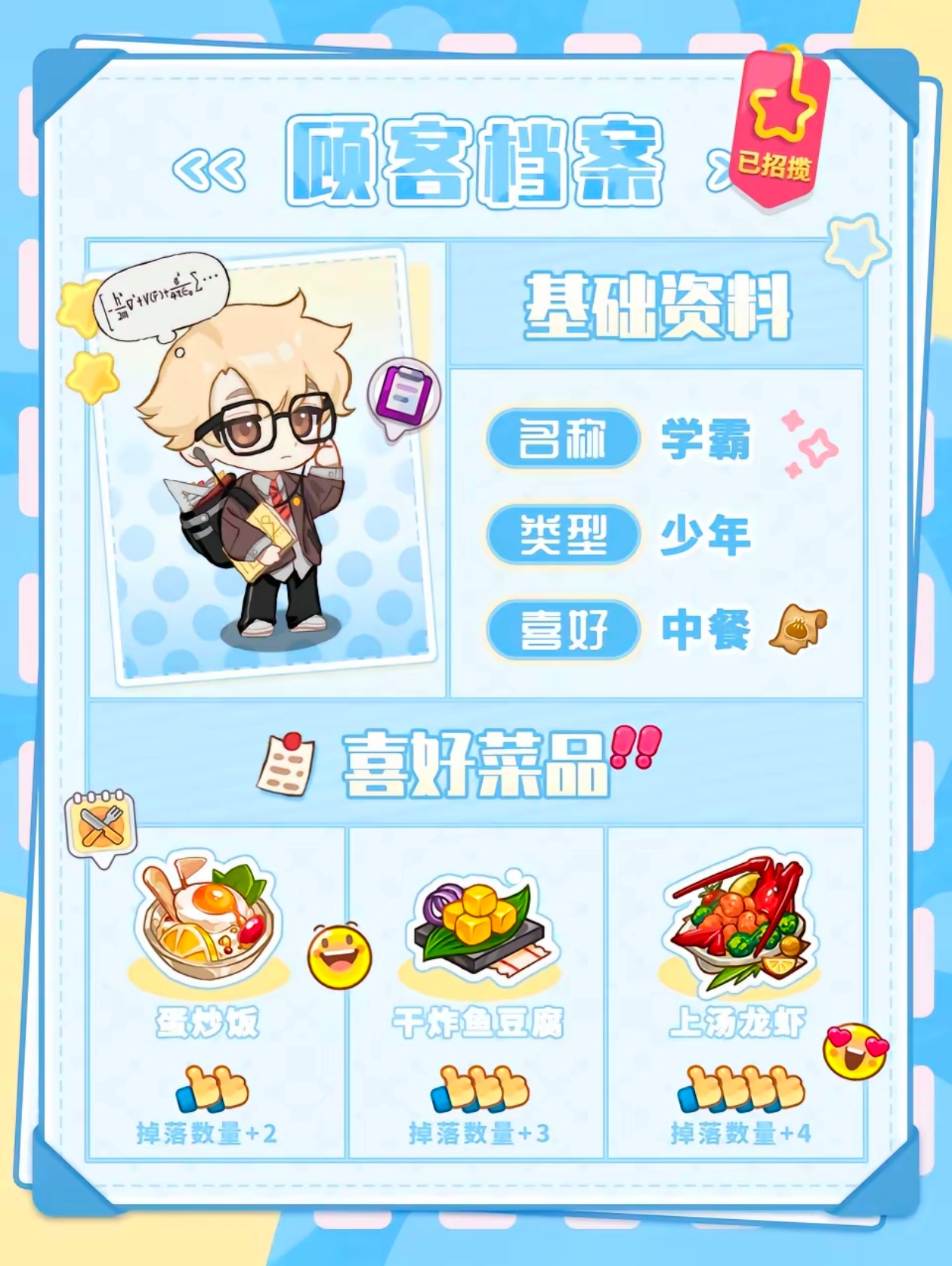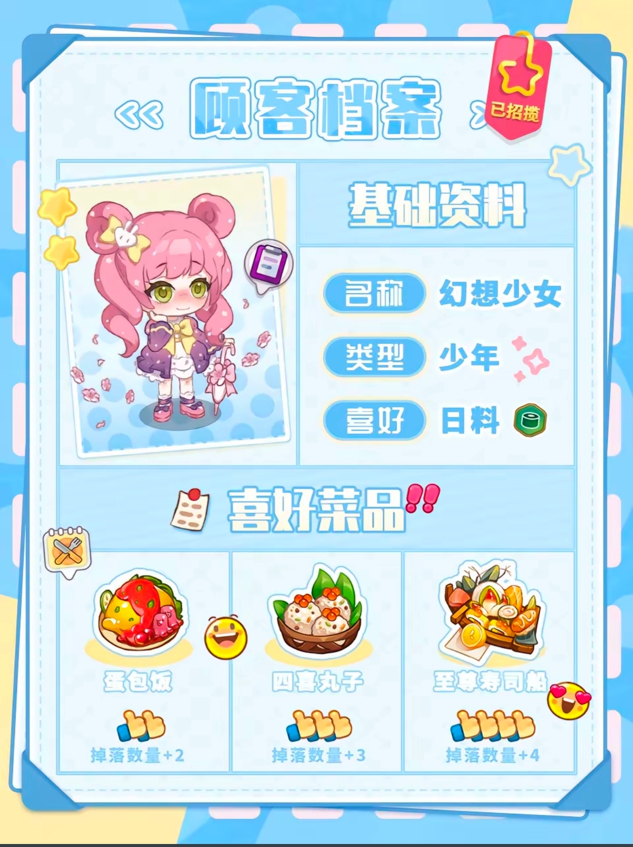 梦境食旅游戏中大家肯定觉得顾客没啥卵用,其实不然,升级顾客有很多益处,不但可以领取很多奖励,而且菜的价格还会随着顾客等级提升,还会提升收益评分!下面是小编给大家带来的《梦境食旅》顾客档案大全及烹饪百科攻略图分享。