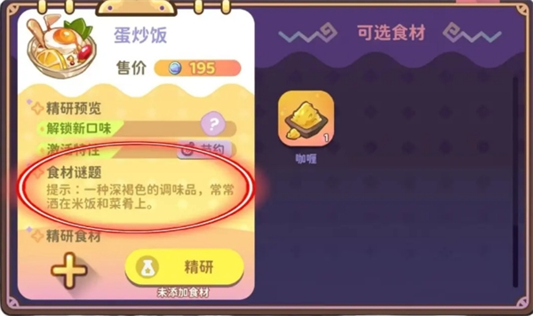 精研的时候注意查看谜题,别用错食材,用错了食材就没了